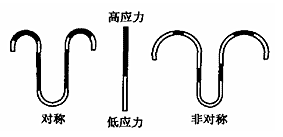 Kaynaklı metal körüklerden farklı olarak asımetrik körüklerin oluk ve sorguçlarının eğrilik yarıçapı değişiktir. Sorgucun eğrilik yarıçapı, oluğunkinden daha geniştir. Basınç şartlarında, deformasyon genellikle düşük basınçlı tarafta oluşarak gerilimin iyi dağıtılmasına sebep olur. Aynı zamanda asımetrik körüklerin özel yapıları sayesinde kaynaklı kısım uzunluğu kısadır.